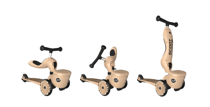 Easily switch between scooter and seat mode, no tools required. With three adjustable seat heights and handlebars, the scooter grows with your child. Weight-shift steering and grip tape on the footboard make riding safe, smooth, and comfortable.
